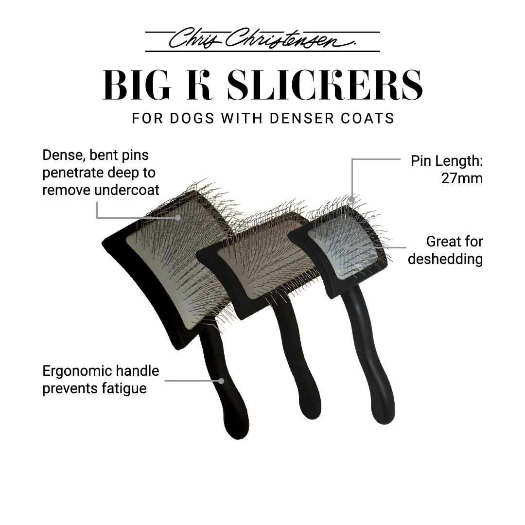 The Chris Christensen Big K brushes were originally designed to fit the specific needs of the Black Russian Terrier; however, it was soon discovered that the brush also worked for dozens of other breeds as well. These amazing brushes detangle and remove knots in half the time of other slicker brushes, and they are ideal for long and hard-to-manage coats.