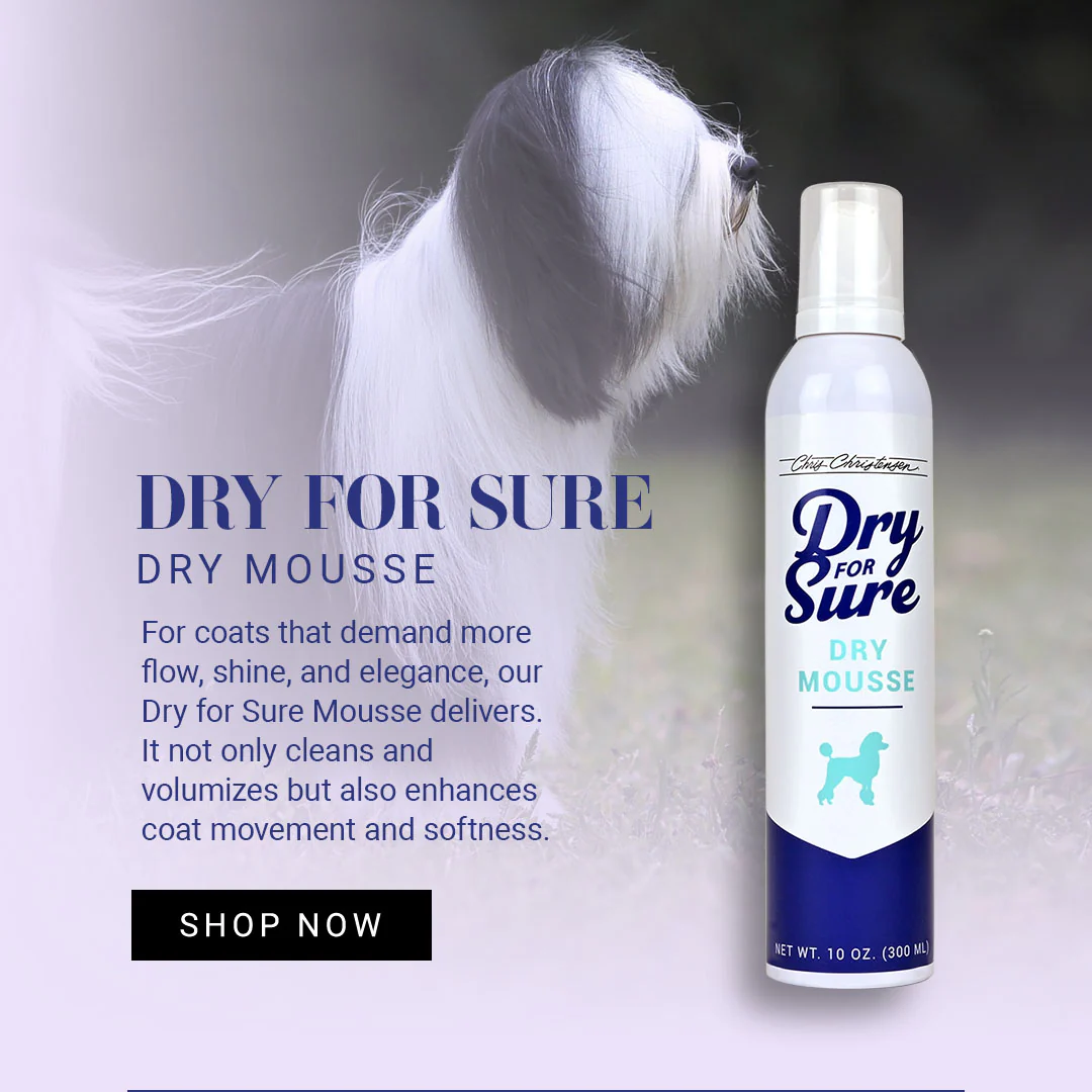 Introducing Dry for Sure Dry Mousse—the ultimate waterless solution for a quick refresh, added volume, and a flawless finish. This lightweight mousse cleans deeply while enhancing the coat’s natural flow, leaving it soft, weightless, and full of life. Perfect for grooming competitions, dog shows, or everyday touch-ups, Dry for Sure delivers professional-grade results without the mess of water—helping your dog look its best with ease.