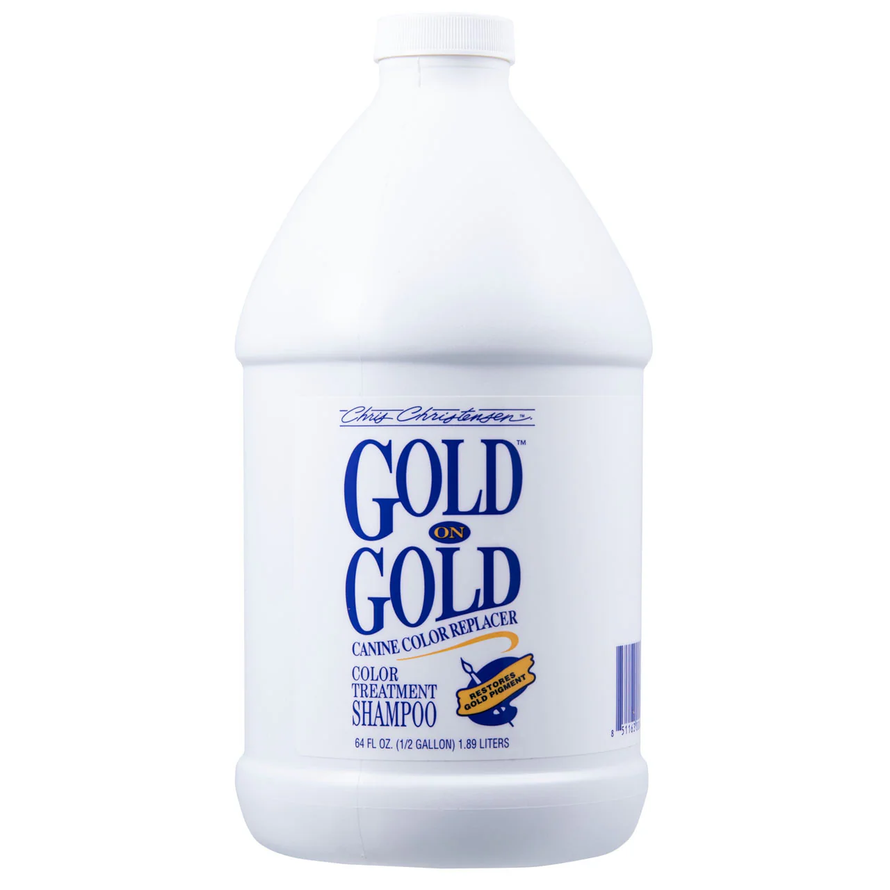 Chris Christensen Gold on Gold Shampoo is a treatment within a shampoo that enriches gold, brown, and red color tones. This shampoo also works beautifully on dark multi-colored breeds such as German Shepherds and Belgian Tervurens, intensifying the gold undercoat to give the appearance of depth and fullness.